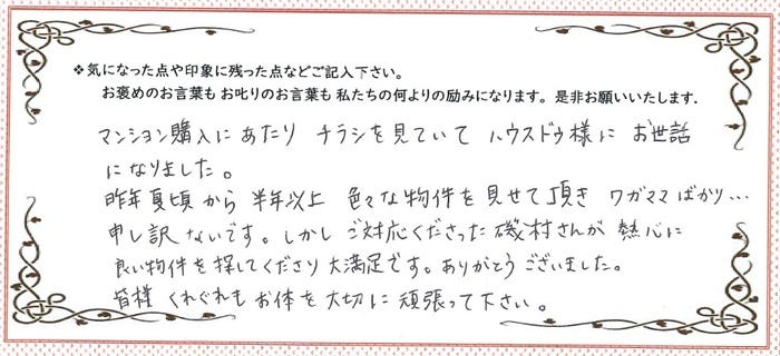 ご購入/I様 北名古屋市 マンション ご購入 ありがとうございます!